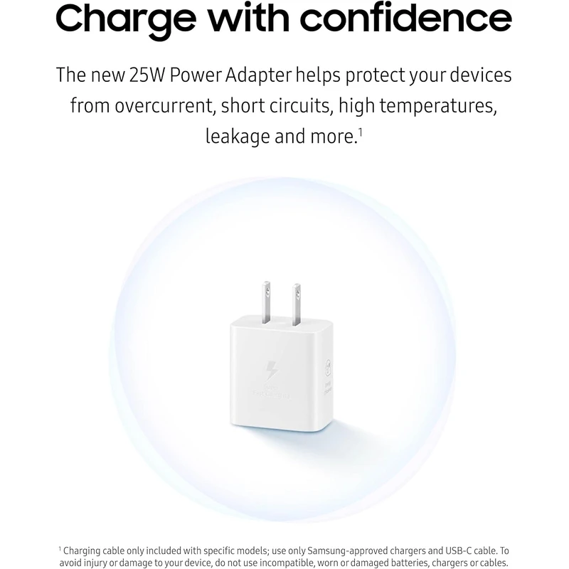 Designed for users who want dependable fast charging in a small and easy to carry form, this Samsung 25W charger provides strong power delivery for a wide range of devices. The included cable ensures quick setup and optimal charging speeds.